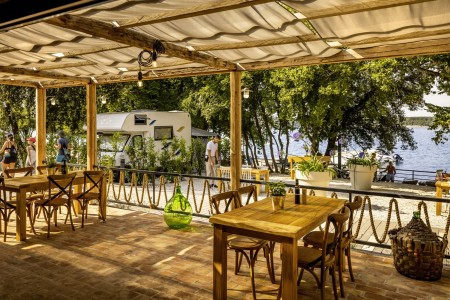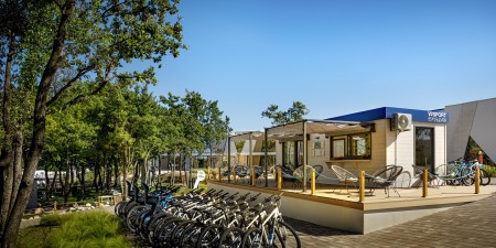The camping resort with comfortable mobile homes and numerous facilities for a varied family vacation is located on a headland about 700 m from the center of the charming coastal town of Funtana and about 7 km from the historic old town of Poreč. The advantageous location directly by the sea with beautiful pebble and rocky beaches, crystal-clear water and shady trees offers the best conditions for a vacation experience close to nature without having to sacrifice contemporary comfort. I.D. Riva Tours has the mobile homes of the provider Victoria under contract, which are located in the "Orlandin" area.