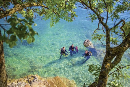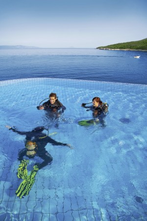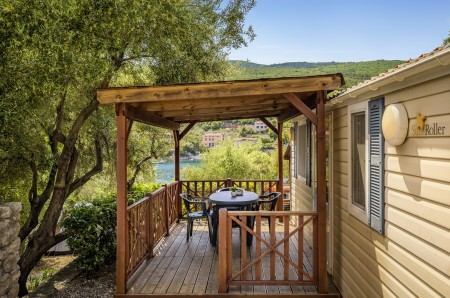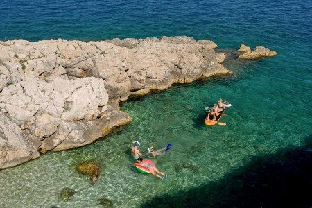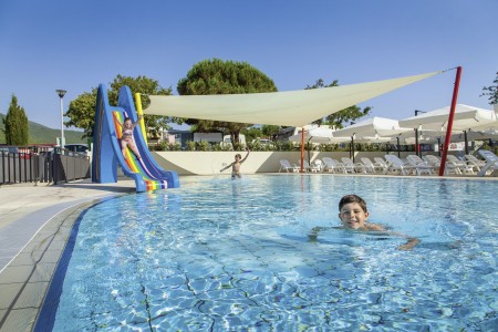 The family-friendly, nature-oriented 4-star campsite is located on a quiet, green headland on the east coast of Istria, not far from the sister towns of Labin and Rabac. Various amenities within the complex, such as restaurants, beach bar, bakery, grocery store and kiosk, ensure a varied and relaxing vacation for the whole family. Particularly noteworthy is the diving center in the complex, one of the best in the Mediterranean with a comprehensive range of services for all diving enthusiasts. A swimming pool complex with infinity pool and separate children's pool completes the offer.