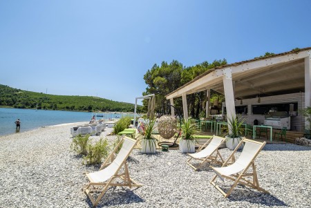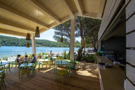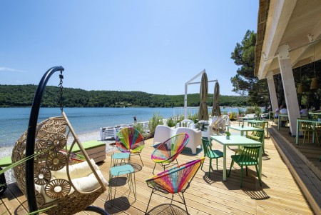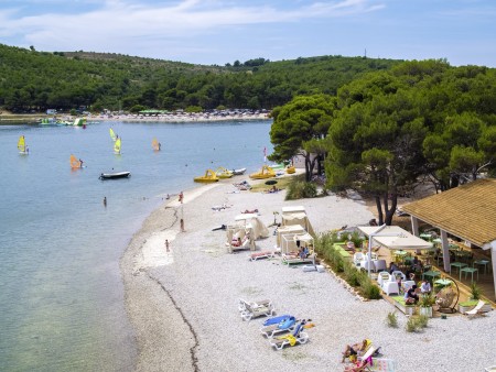 Beach: The rocky and pebbly beach with sun loungers runs around the peninsula and is 20-100 m away, depending on the accommodation. There is also a dog-friendly section of beach.