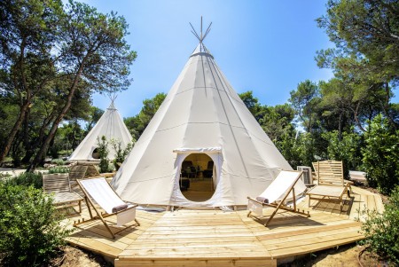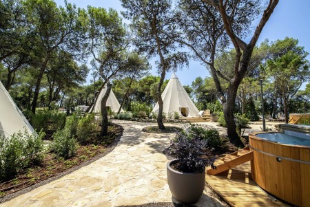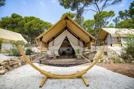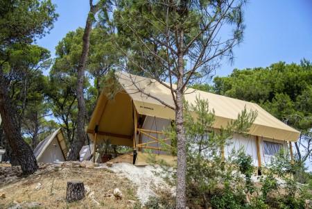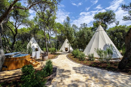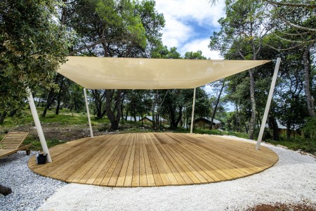 This unique glamping paradise is located in the south of the Istrian peninsula, in Pomer, a district of Medulin. Set in a dense pine forest overlooking the crystal-clear sea, it is the perfect place to relax and enjoy a vacation in nature. Arena One 99 Glamping is the first luxury campsite in Croatia and offers a first-class vacation experience close to nature in addition to comfortable and modern amenities. The site is suitable for both couples and families. The beautiful landscape in the bay of Medulin rounds off the recreational experience and provides the ideal backdrop for a relaxing stay. The adjacent, gently sloping beach is ideal for families with small children.