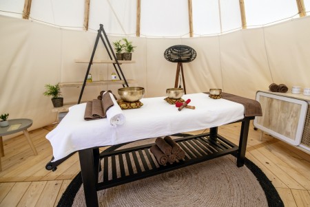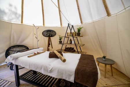 Wellness-Center: The outdoor wellness area "SPA One4You" offers outdoor whirlpools, tents for treatments and massages, sauna, rain room, relaxation areas, a yoga and wellness platform in the forest and an outdoor gym. Various spa programs, yoga, meditation and gymnastics are offered. Only certified spa products of natural and organic origin are used in all treatments.