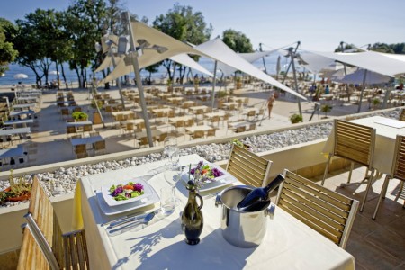 Facilities: Restaurant, pizzeria, grill, pastry shop, fast food, fruit and vegetable stand, fresh corner with bakery, aperitif bar, pool bar, souvenir and magazine store, supermarket, TV room with satellite TV, massage, laundry, ATM, children's playground, three seawater swimming pools (one of which is a children's pool), sun loungers and parasols (for a fee). In season, entertainment evenings, dance music and children's program on the terraces, by the pool or on the beach, daily entertainment program for children and adults, teen club (11-18 years), mini club (4-12 years) in July and August from 10 am to 8 pm, the rest of the time two hours in the morning and two hours in the afternoon. Unguarded parking lot in the resort. WiFi internet available (free of charge). Cab boat and bus connection to Rovinj in July and August (for a fee).