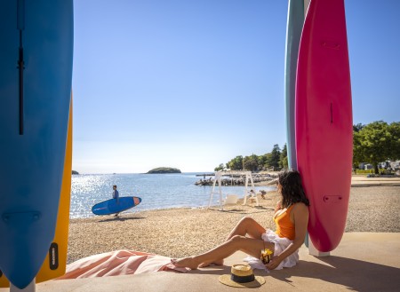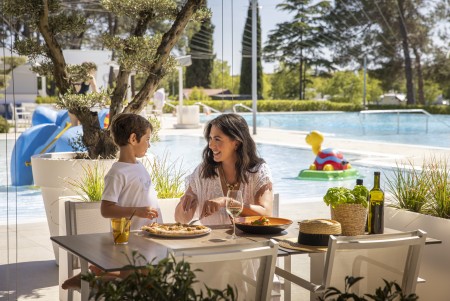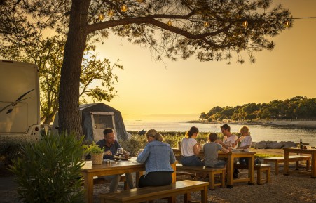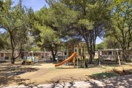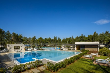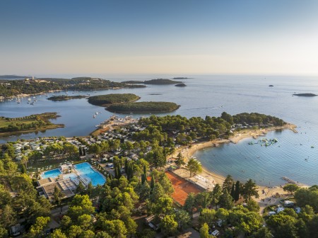 The popular and family-friendly campsite is located in a picturesque bay between the coastal towns of Vrsar and Funtana. The mobile homes of our contractual partner Maistra are located in a newly built, quieter part of the complex and offer the best conditions for a relaxing vacation at the campsite at an upscale level. A special feature is that 6-14 mobile homes of the Premium type each share a private swimming pool (approx. 24 m²), whirlpool and children's pool, which are exclusively available to the guests of the corresponding mobile homes.