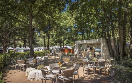 Facilities: Reception, several restaurants and café bars, kiosk, supermarket, pizzeria, cocktail bar, market stalls with fruit and vegetables, barbecue area, ATM, several WiFi hotspots (free of charge), children's playground, varied entertainment program during the high season. Freshwater swimming pool complex with sunbathing lawn, sun terrace, sun lounger rental, pool bar and restaurant. Free parking available in the complex.