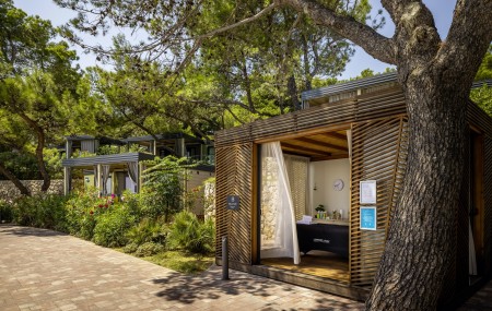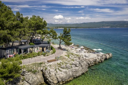 The modern, terraced camping resort is located directly by the sea, just a few minutes' walk from the beautiful old town of Krk. The resort is surrounded by lush greenery and offers all the amenities for a relaxing family vacation. Krk, the island's main town of the same name, is located on the sheltered west coast in a bay surrounded by coniferous forest. Quiet island life characterizes the harbour, while the restaurants, bars and cafés on the Riva in front of the old town with its narrow streets are lively and bustling in the evenings.