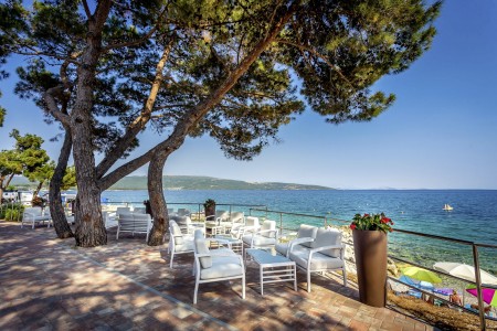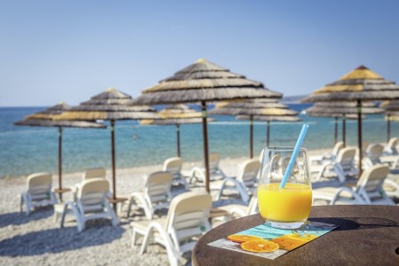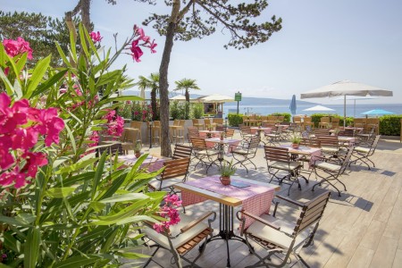 Beach: The beautiful pebble and rocky beach with sunbathing areas, beach bar and restaurant, sun lounger and parasol hire, showers and changing cabins is just a few steps away. The beach has been awarded the "Blue Flag", which stands for a clean, well-kept coastal area with excellent water quality.