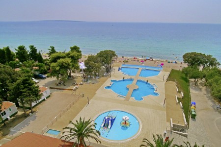 On the island of Pag, in the town of Novalja, the popular campsite is located directly on the 2-kilometer-long pebble beach. Surrounded by shady oaks, fragrant pines and olive trees, the resort offers ideal conditions for a relaxing beach vacation with the family. In addition to a unique natural landscape with crystal-clear sea, numerous sports and leisure facilities await you.