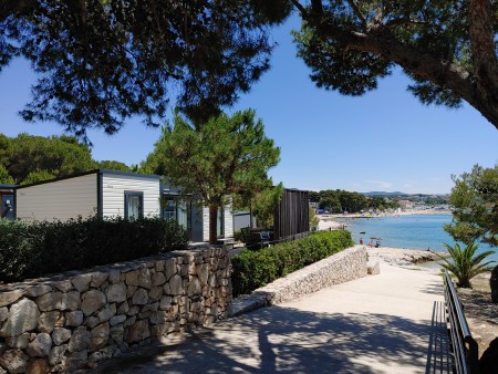 The campsite is located directly by the sea, framed by a shady pine forest, about a ten-minute walk along the coastal promenade from the center of the fishing village of Pakoštane. The cozy campsite has been one of the best Croatian campsites for many years and is the ideal place to spend a relaxing vacation with the whole family. The car-free "Adria Village" area offers special comfort with "Superior" mobile homes and a private swimming pool. These are located on the beach and are a prime example of the new generation of mobile homes. Located between the two historic towns of Zadar and Šibenik, there are numerous excursion possibilities. Enjoy the unique natural beauty of the nearby Vrana Lake with its bird reserve, discover the Kornati Islands National Park on a boat trip and experience the sociable Mediterranean atmosphere of the picturesque coastal towns.
