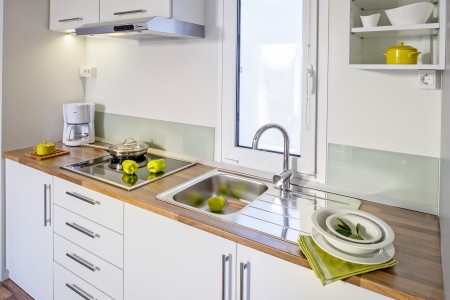 Note: No deposit required. Final cleaning included in the price. Bed linen (change once a week) included. Please bring your own towels and tea towels. Tourist tax (approx. € 1.50 per person per day) and registration fee (one-off € 1.50 per person) payable on site. Microwave and baby crib available on request, please specify when booking. Extra tent not permitted. In the "Superior" mobile homes, bed linen is changed every 4 days, towels and microwave are included in the price.