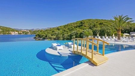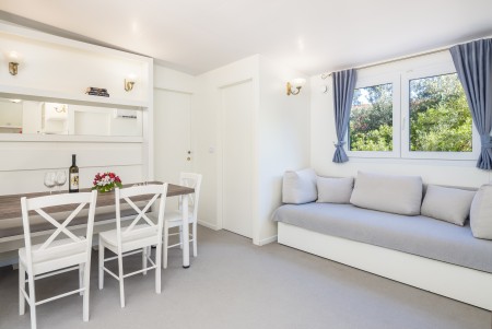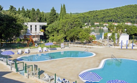 The Aminess Vival Port9 Resort is located in a quiet bay, just a few steps from the pebble beach, and consists of 92 apartments, a campsite and a hotel, whose facilities may also be used. In addition to pitches, modern mobile homes are also available for rent, guaranteeing a comfortable stay in a natural environment. The old town of Korčula is approx. 2 km away and can be reached via the coastal promenade or easily by cab boat.