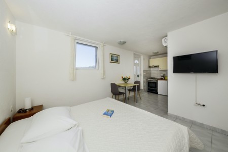 The house with three apartments is situated in Ražanj, just a few steps from the sea and about 400 metres from a beautiful pebble beach. The small coastal village stretches around a deep bay, 12 km southeast of Rogoznica and 26 km northwest of Trogir. The fishing and holiday resort is considered one of the "hidden pearls" of the Adriatic coast and offers perfect conditions for a relaxing beach holiday. Look forward to your own balcony or terrace with a magnificent sea view. The hosts live in the same house and are at your disposal if you need anything.