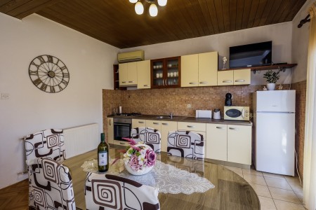 The spacious apartment with three bedrooms is located in Marina. The small town is situated in a protected bay between Rogoznica and Trogir. The town's landmark is the imposing 16th century fortified tower, today a small hotel. The lovely town center with restaurants, cafes and shopping facilities can be reached on foot in a few minutes. In the surroundings of Marina there are numerous fantastic beaches to discover. Only 16 km away from Marina is the charming town of Trogir. The historical town center awaits its visitors with numerous sights, a lively harbor promenade with cozy cafes, romantic restaurants and the unique atmosphere of a Mediterranean coastal town, which is definitely worth a visit.