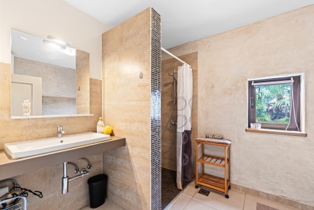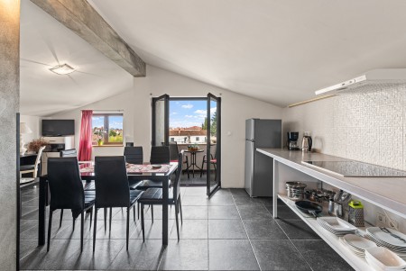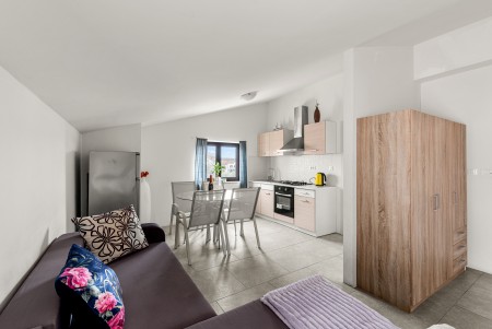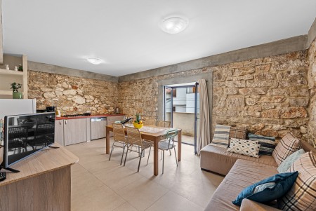 The house, containing four apartments, is located in Funtana. Funtana lies in western Istria, between Poreč (7 km) and Vrsar (4 km), on the peninsula's most rugged coastline, with countless bays and small offshore islands. The small town center is just 300 m from the apartments and offers shops, various restaurants, bars, and cafes. There are numerous excursion options in the surrounding area, such as the Aquapark Aquacolors (approx. 3,5 km) and the popular Dinopark (approx 1 km).