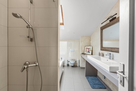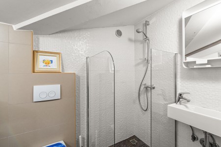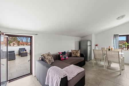 Further details: On the ground floor of the house, there is an entrance area with a shared area. From here, stairs lead to the apartments. WiFi Internet is available free of charge. One parking space per apartment is provided. At a distance of approx. 50 to 100 m, there is a shared outdoor area with barbecue, summer kitchen (sink, refrigerator), table and chairs, sun loungers and table tennis, available to guests of several properties of the same owner.