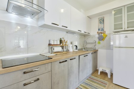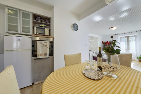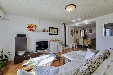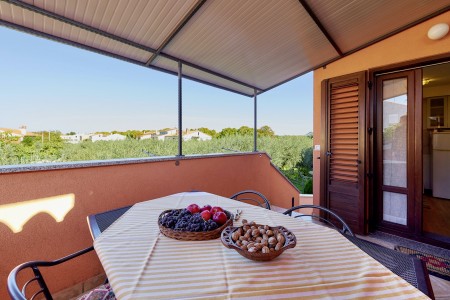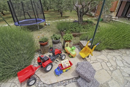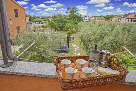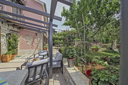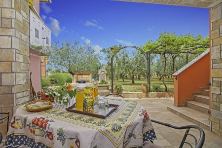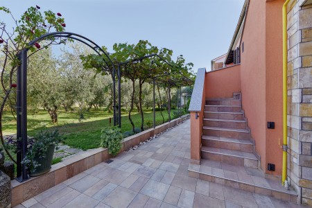 The house is situated on the outskirts of the town of Vodnjan in a quiet and peaceful surrounding. Vodnjan is famous for its historic church and bell tower, which is the highest in Istria and certainly worth a visit. In addition to a comfortably furnished two-bedroom apartment, you will find a well-kept garden with a covered barbecue and dining area and two furnished terraces for your exclusive use. The apartment is located on the first floor of the house.