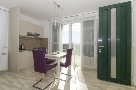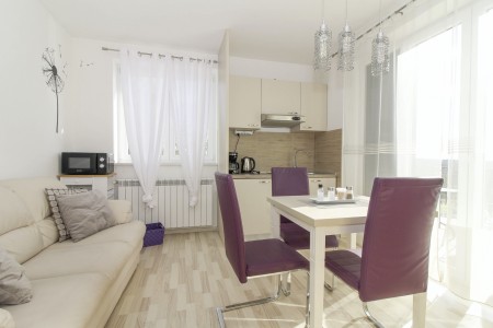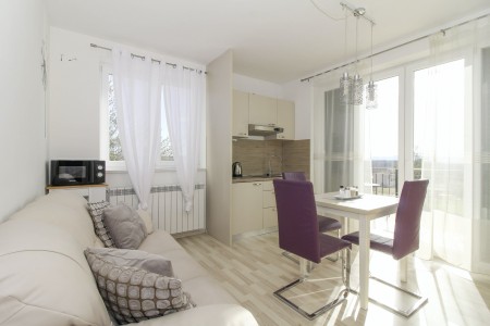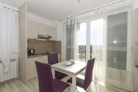 Apartment Dali is located in Sveti Martin on the ground floor of a detached family house. Thanks to the advantageous location in the green hinterland of the Istrian peninsula, this holiday apartment is suitable not only for a relaxing stay, but equally as a starting point for exciting excursions. The well-known coastal resorts, such as Opatija, Pula and Rovinj are located within a radius of 50 km and can be easily reached by car. And if you prefer to travel without a car, you can explore the beautiful surrounding countryside on foot or by bike. The nearest beach is located in Rabac and is only 14 km away.