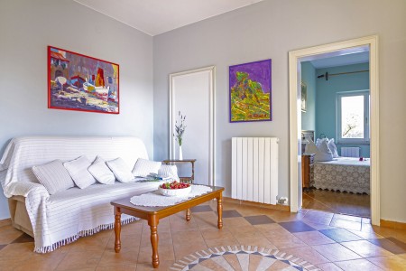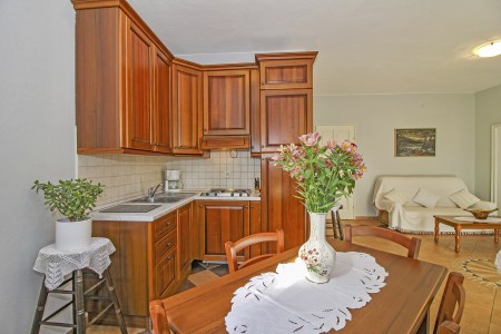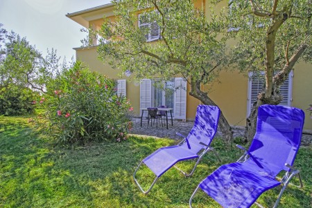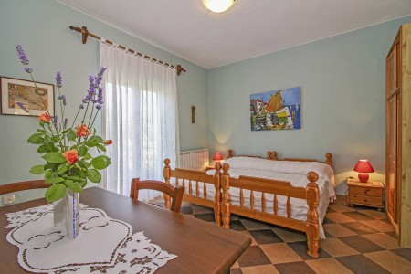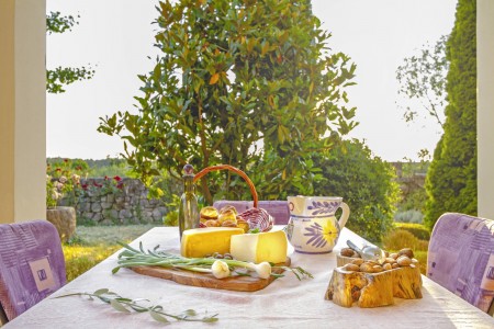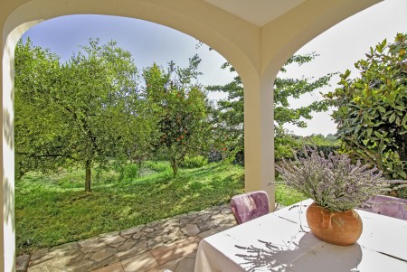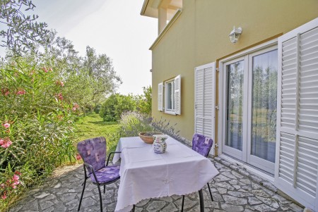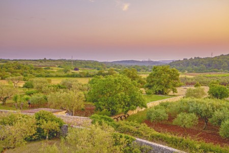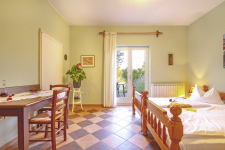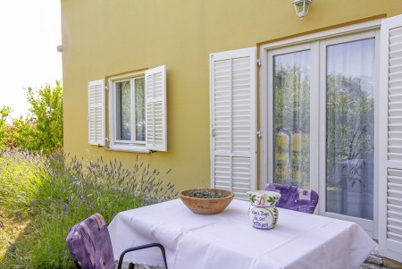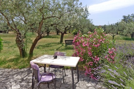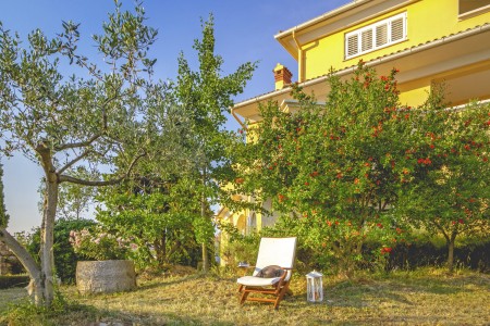 The house is situated on a 2,600 m² plot on the edge of Rovinjsko Selo. As it is located on a small elevation, you can enjoy a wonderful view of the Rovinj Bay from here. Thanks to its favourable position facing the sea, the area enjoys pleasant temperatures and a mild climate throughout the year. Although the house is modern, it is furnished in a charming, rustic country style. Your hosts are devoted nature and environmental enthusiasts, living by these values themselves and wishing to share them with their guests. Therefore, we recommend these apartments to those who appreciate simplicity and nature and who prefer to do without all modern technology in everyday life – especially during their holidays.