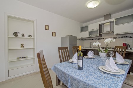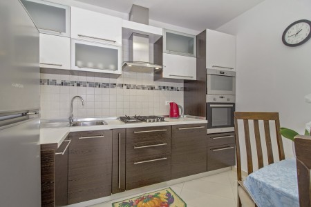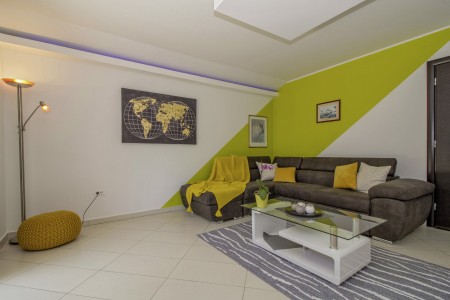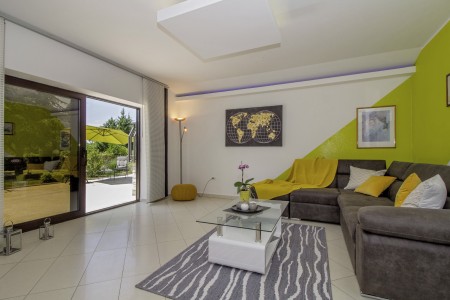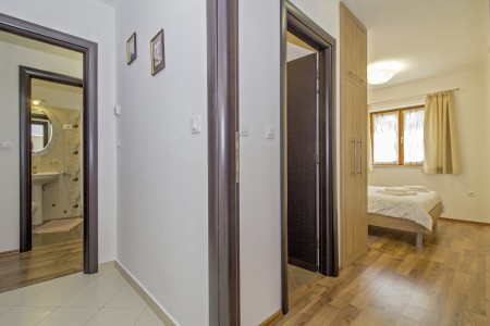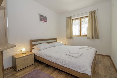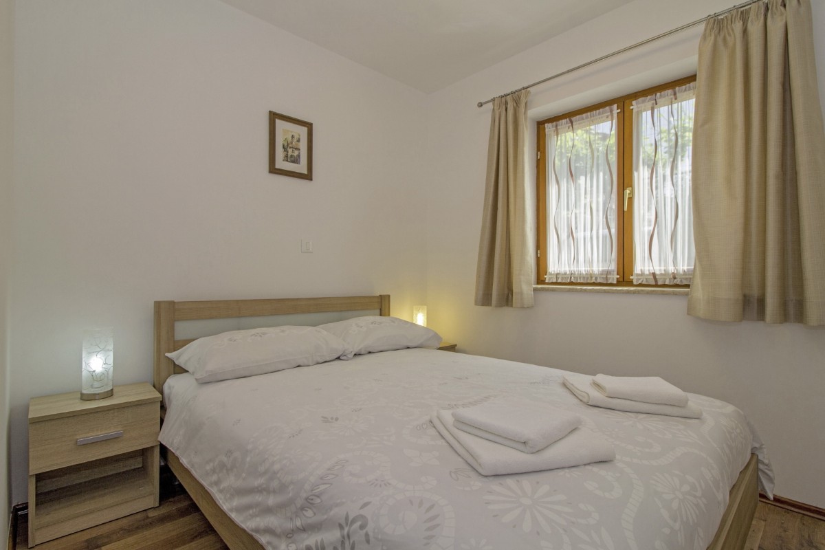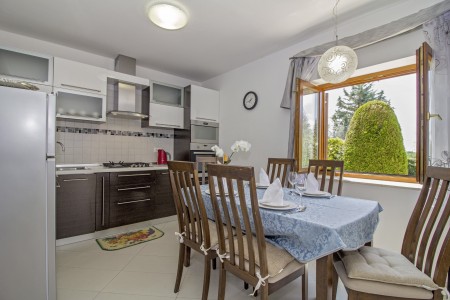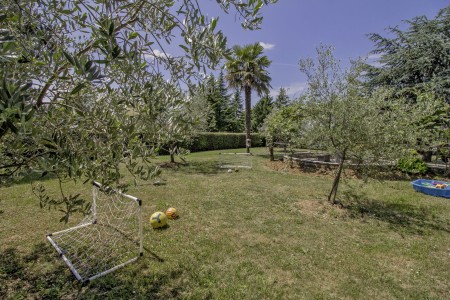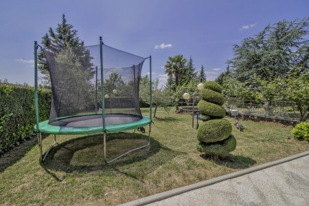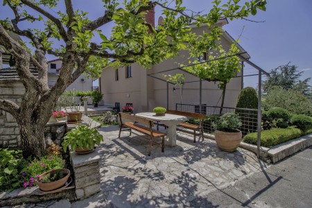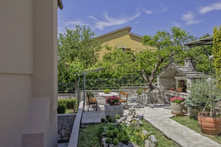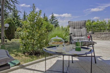 The house with one holiday apartment is located in a quiet, green surrounding, about 2 km from Gračišće and 6 km from Pazin. In Gračišće you will find everything for your daily needs as well as a charming old town with a vista point offering spectacular views of the evergreen Istrian landscape. In the surrounding area, there are numerous hiking and biking trails. Adventurers will love the zip line above the Pazin Abyss. Just 12 km away, you'll find the “Zarečki Krov”, also called the “Pazin Riviera” by the locals. Here, the small river Pazinčica forms a waterfall which is falling into a small lake. This area is perfect not only for hiking trips, but a popular bathing place during summer as well. In addition to a cozy holiday apartment, a lovingly maintained garden awaits you with plenty of space for kids to play and adults to relax in the shade. The garden including barbecue area is available for your exclusive use. The landlords live in the same house, which will not disturb your privacy in any way. The nearest beach is located in Plomin and can be reached by car within 20 minutes.