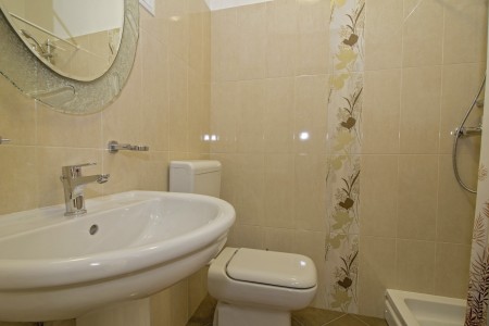 Apartment for 4-5 persons: approx. 66 m² on the ground floor. Lovingly furnished, the apartment offers a fully equipped kitchen with dining area, a living room with air conditioning and sofa bed (140 x 200 cm) and direct access to the large terrace, two bedrooms with double bed and two bathrooms with shower.