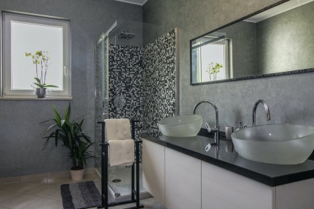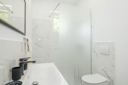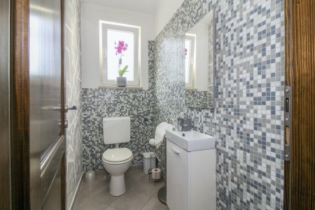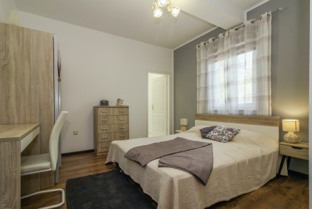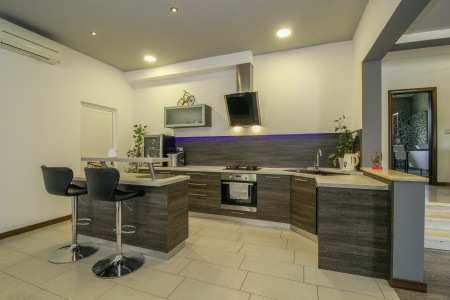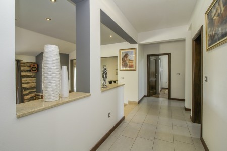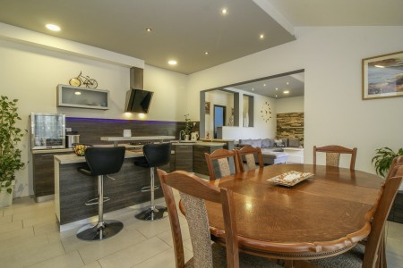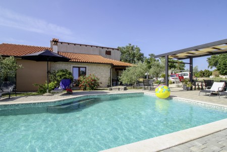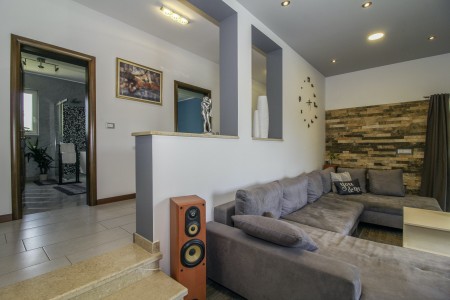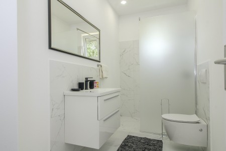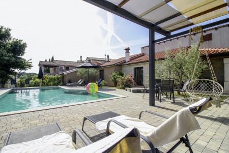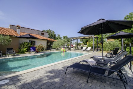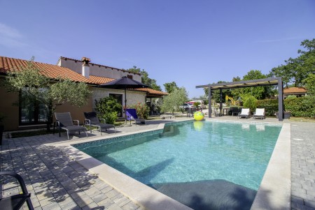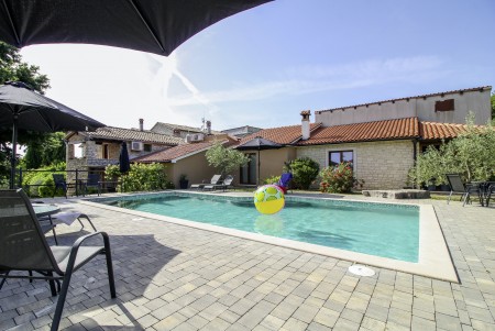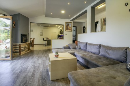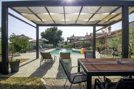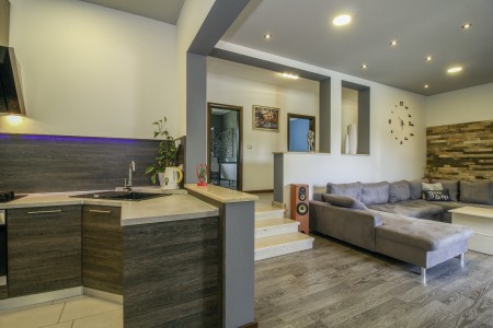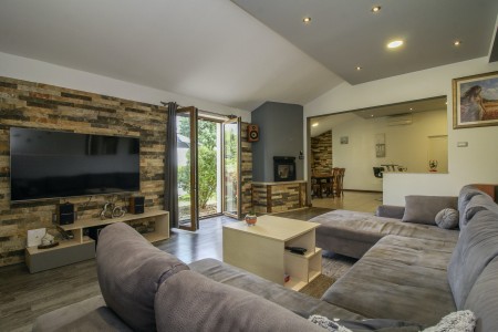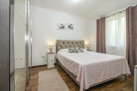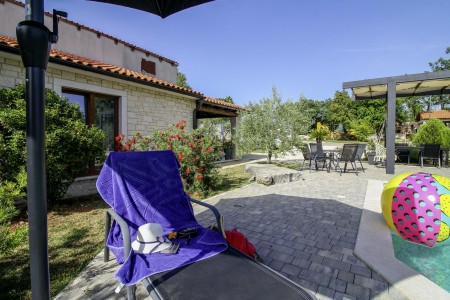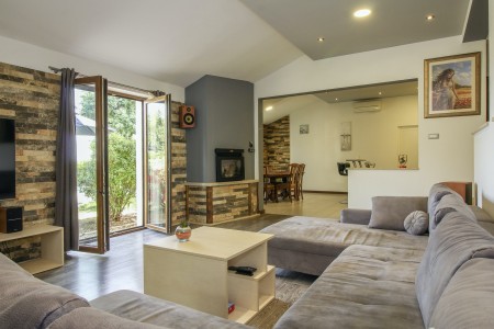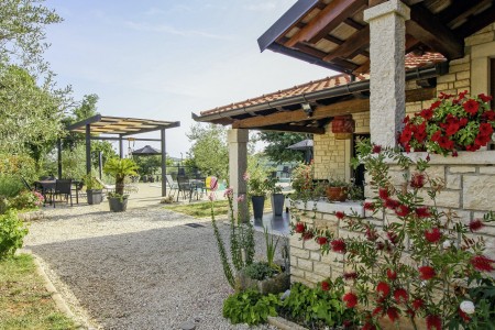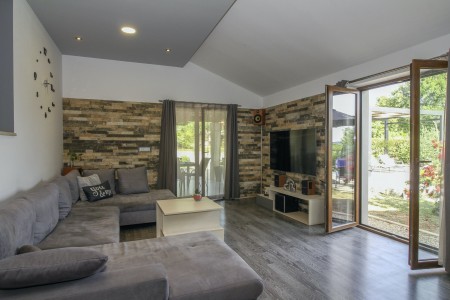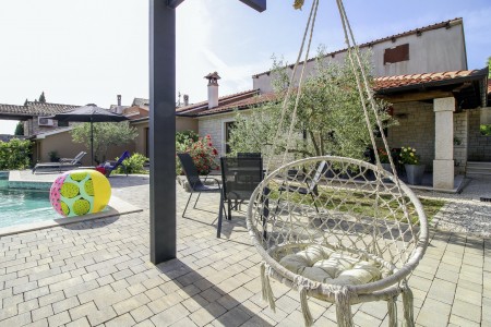 This modern holiday apartment is located in the quiet and green surroundings of the village Pilkovići, only 15 minutes by car from Rovinj. In addition to a comfortably furnished interior, a large shared garden with several cozy spots for relaxing and swimming pool as well as barbecue area awaits you. While you can enjoy the rural tranquility here, the most popular and probably most beautiful coastal town of the Istrian peninsula, Rovinj, is only 15 minutes away by car and definitely worth a visit. Rovinj offers not only an enchanting old town with interesting sights, but also some excellent restaurants, bars, cafes and many shopping facilities. To the sea in the Lim Bay it is about 10 km. There you will find a romantic natural spot for swimming and a recommendable seafood restaurant.