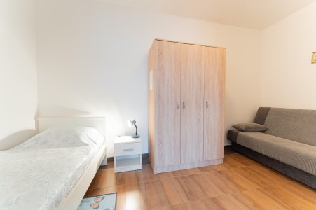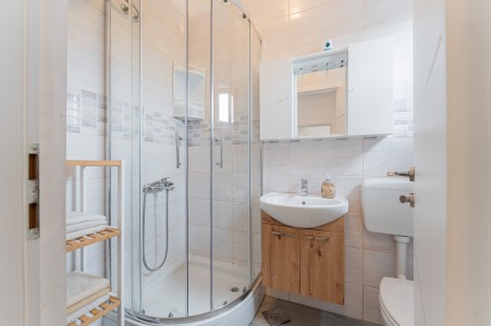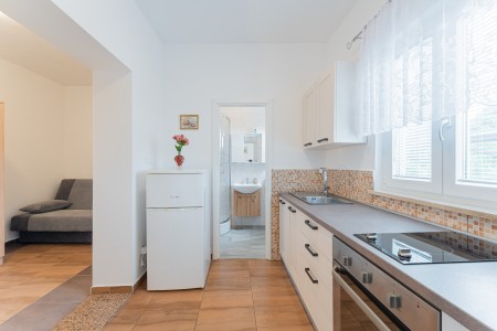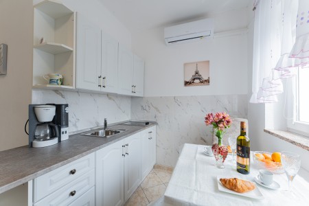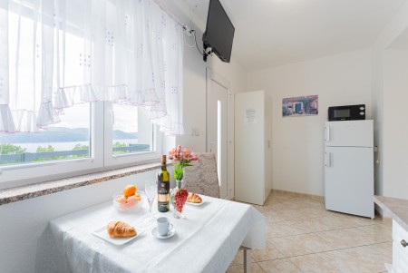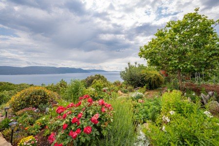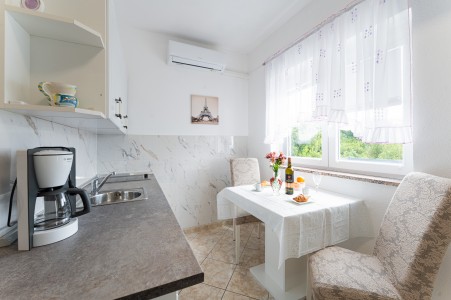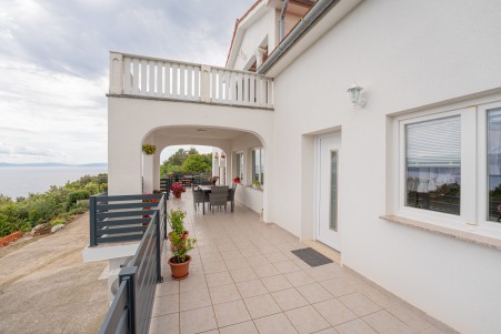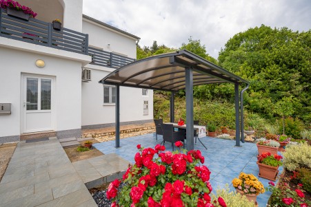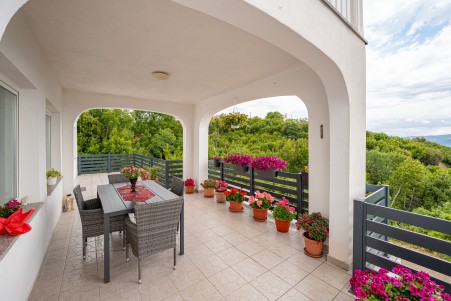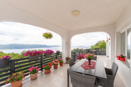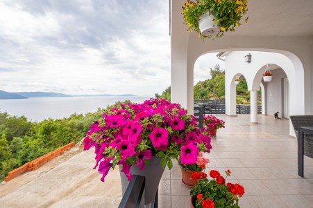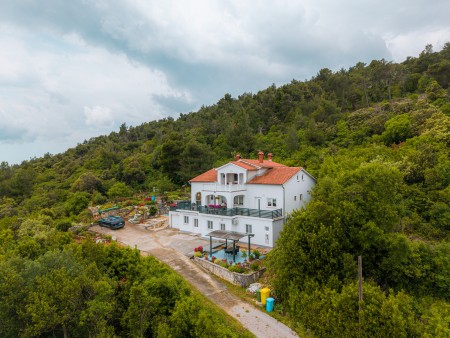 In an absolutely peaceful and quiet setting with magnificent views of the blue sea and the green island of Cres, Villa Paradiso awaits you in a picturesque hillside location on the unspoiled east coast of the Istrian peninsula. Active vacationers will find here the best conditions for extended hikes and tours by bike through the uniquely beautiful landscape. Those who just want to relax and enjoy a beautiful sea view are also in good hands here. The house consists of the private apartment of the host and two rental apartments. The nearest beach is about 3 km away. The surrounding small towns Plomin (5 km) and Labin (15 km), and also Opatija (33 km) are certainly worth a visit. In the nearby town of Brestova you will find a ferry connection to the island of Cres - a paradise for nature lovers.