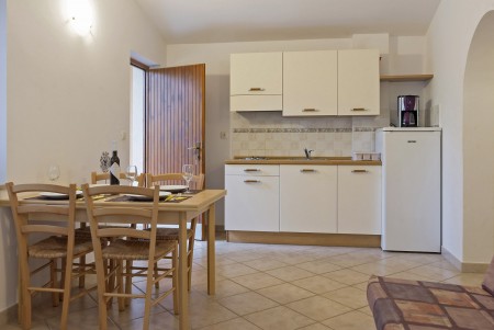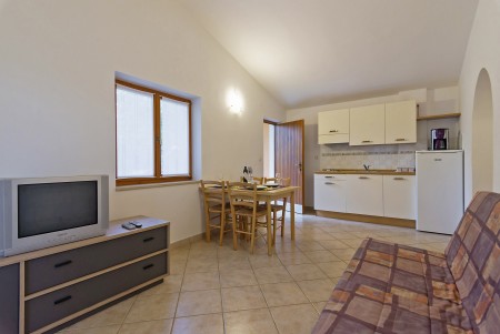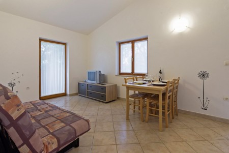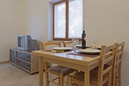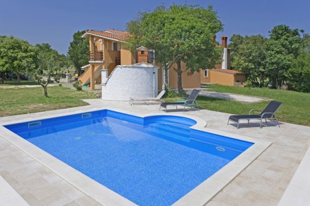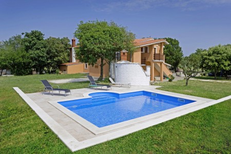 The former farmhouse with four cozy apartments for rent is located in the village of Krnica, in the southern part of the beautiful Istrian peninsula. The property comes with approx. 2,000 m² of land, featuring a swimming pool (6 x 4 m) and an outdoor shower. Surrounded by vast meadows, fields and woods, it is the ideal place to enjoy a rural vacation with the entire family. Your hosts, who live nearby, will be happy to assist you with anything you should require.