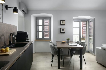 Nestled within a historic edifice in the lovely hilltop town of Labin, Apartment Ginger offers an amalgamation of modern comfort and timeless elegance, creating an idyllic setting for a romantic sojourn for two. The apartment is impeccably furnished, ensuring that guests need not sacrifice contemporary amenities while basking in the romantic ambiance of the ancient city center. Labin offers many conveniences for daily needs, such as restaurants, bars, and shopping facilities that are all within easy walking distance. Moreover, the pristine pebble beaches of Rabac, as well as secluded, untouched coves along Istria's eastern coastline, are just a short drive away. The verdant landscape surrounding Labin also serves as an excellent backdrop for cycling and hiking adventures through the evergreen Istrian Peninsula.