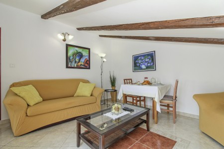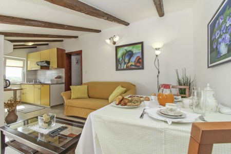 The charming house with three cozy units for rent is located in a peaceful and quiet hamlet, named Varvari, only 3 km away from the bustling holiday town of Poreč. While Poreč is in easy reach and offers a full range of shops, restaurants and cafés as well as many cultural sites and beautiful beaches, you are invited to enjoy peace and quiet at this welcoming place. Be it inside in one of the lovely decorated apartments or outside in the well-kept garden, coming with some really cozy and shady spots – perfect for reading a book or simply relaxing and enjoying your free time.