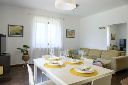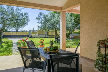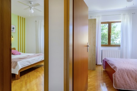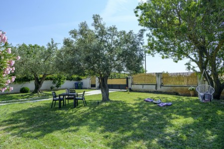The detached house with two holiday apartments, fully fenced garden and the private flat of the landlords is located in a quiet area of Pula, only 7 km from the nearest beach and 3 km from the historic city center. Pula offers its visitors numerous sights, restaurants, places to go out and shopping facilities. The most famous monument and landmark of the city is the impressive Arena, an amphitheater dating back to Roman times, which cannot only be visited, but also serves as a unique open-air stage for different concerts and movie events. Only 10 minutes by car from Pula is the fishing village of Fažana, from where excursion boats depart for the National Park of the Brijuni Islands, which are definitely worth a visit. Restaurant and shops are within walking distance.