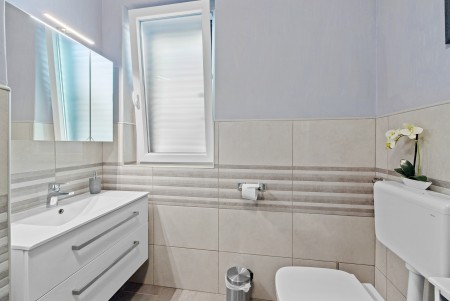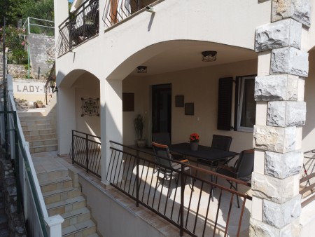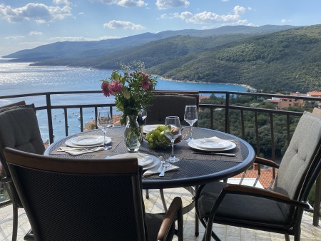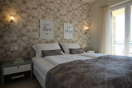 Rabac is a popular holiday resort on the east coast of Istria, known for its clear sea, well-maintained pebble beaches and a pleasant, relaxed atmosphere. Along the promenade, you will find cafés, restaurants and small shops, while numerous bays offer ideal conditions for a relaxing beach holiday. In the surroundings of Rabac, the historic old town of Labin invites visitors to an interesting excursion, including its former mine, which offers an insight into the region’s mining heritage. The green Istrian hinterland is also easily accessible and complements a stay in Rabac with a variety of excursion options. The area around Labin is also well suited for cycling and hiking tours through the evergreen landscape of the Istrian peninsula. The apartments are located in an elevated part of Rabac. Each apartment features two bedrooms and offers sea views from the terrace. The nearest restaurant and a grocery store are located approximately 500 m away.