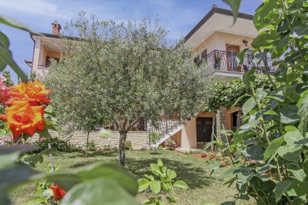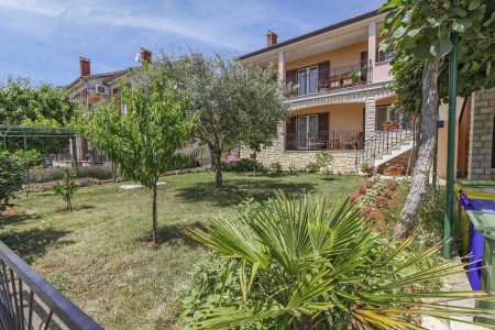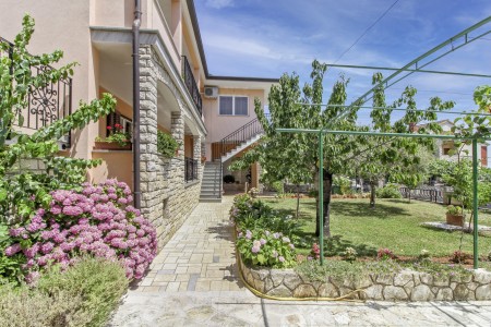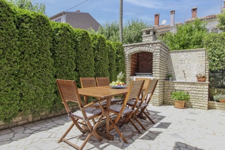 The well-maintained house with two holiday apartments is located in a peaceful and quiet hamlet, only 1 km away from the scenic old town of Rovinj. Rovinj, considered the most beautiful place on the Istrian coast, offers ideal conditions for all those who desire to explore the atmosphere of a typical Mediterranean town, combined with relaxing days at the beach. Discovering Rovinj with its winding cobbled streets lined with bars, cafés and art galleries is always exciting - be it by day or by night. While Rovinj is in easy reach and offers a full range of shops, restaurants, cafés and beaches as well as many interesting sights and secrets to discover, you are invited to enjoy peace and quiet at this welcoming place. The one-bedroom apartment is modernly furnished and equipped with all amenities needed for a pleasant stay. The beautiful shared garden is fully fenced, offering privacy and some lovely spots, perfect for relaxing in the shade.
