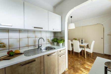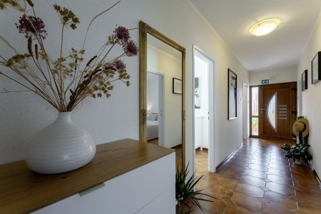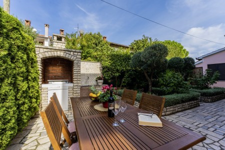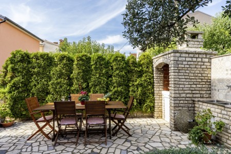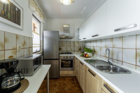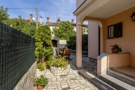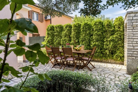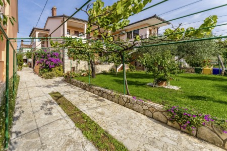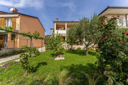 The well-maintained house with two holiday apartments is located in a peaceful and quiet hamlet, only 1 km away from the scenic old town of Rovinj. Rovinj, considered the most beautiful place on the Istrian coast, offers ideal conditions for all those who desire to explore the atmosphere of a typical Mediterranean town, combined with relaxing days at the beach. Discovering Rovinj with its winding cobbled streets lined with bars, cafés and art galleries is always exciting - be it by day or by night. While Rovinj is in easy reach and offers a full range of shops, restaurants, cafés and beaches as well as many interesting sights and secrets to discover, you are invited to enjoy peace and quiet at this welcoming place. The apartment is modernly furnished and equipped with all amenities needed for a pleasant stay. The beautiful shared garden is fully fenced, offering privacy and some lovely spots, perfect for relaxing in the shade.