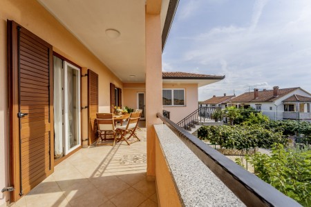 Apartment for 4-6 persons: approx. 100 m², located on the first floor with private entrance. Two comfortable bedrooms with double bed and air conditioning, two bathrooms with shower, fully equipped kitchen and dining area, balcony with table and chairs. Furthermore, a living/bedroom with air conditioning, couch and two single beds, which is connected to the dining area by a sliding door.
