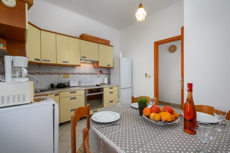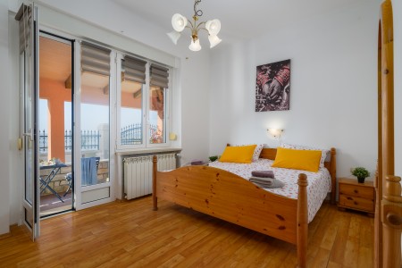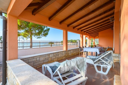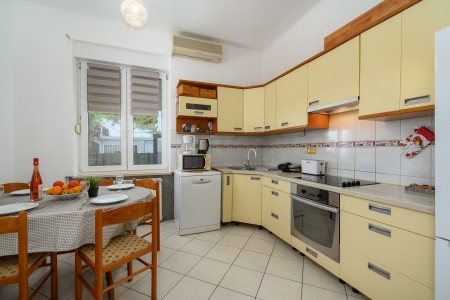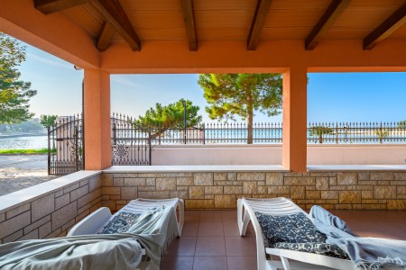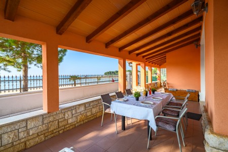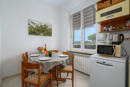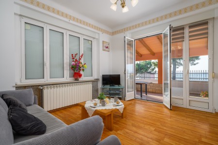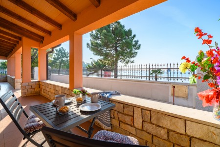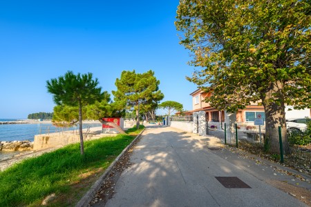 The apartment is located on the ground floor of a family home in the first row to the sea. The nearest beach is only 20 meters away, allowing easy access to the sea within a few steps. The covered sea-view terrace, furnished with a table and chairs is perfect for fully enjoying warm days and mild evenings. Located on the northwestern coast of Istria, only 15 km from the Slovenian border, Umag is Croatia’s westernmost town. Everything for daily needs, like a restaurant, shopping facilities, cafes and the beach are within walking distance. Known as Istria’s vibrant sports center, Umag has hosted numerous tennis tournaments over the years on its outstanding courts, including the famous ATP tournament “Croatia Open”. However, the city offers much more: with its historic harbor and picturesque beaches, Umag captivates those who appreciate both cultural and natural sights. The well-known towns of Poreč, Rovinj, and Pula are easily accessible by car, offering a wide range of attractions and unforgettable experiences.