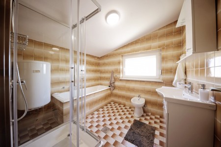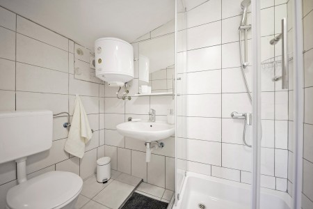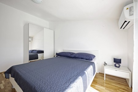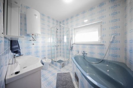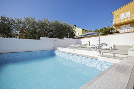 The picturesque coastal village of Vodice lies 15 km north of Šibenik and about 50 km south of Zadar in a wide bay with a shallow pebble beach. Vodice is popular because of its beautiful rocky and pebbled beaches and the countless small bays in the area, but also because of the narrow streets of the old town and the sea-side promenade, where people meet late in the afternoon or evening to stroll around or to stop for a bite to eat in one of the numerous restaurants or cafés. Due to the proximity of the island paradise of the Kornati National Park and other islands, Vodice is an ideal starting point for divers to explore the magical underwater world of the Adriatic Sea. Possibilities for excursions are the National Parks Krka Waterfalls, Paklenica, Plitvice Lakes and Kornati. Worth seeing are also the cities of Zadar, Šibenik, Trogir and Split. The apartments are located in a well-kept private house with swimming pool (6,5 x 8 m), only a 10 minutes’ walk from the beach.