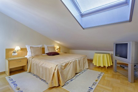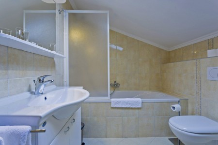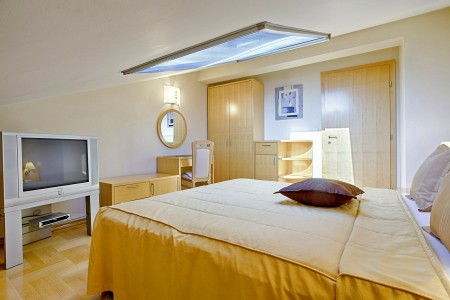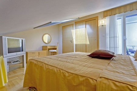 1 apartment for 4 persons AP5: approx. 72 m² on the second floor, divided into two levels. Lower level: air conditioning, one bedroom with double bed and balcony with sea view, bathroom with shower, living area with sofa and balcony with sea view, kitchen with oven, microwave and dishwasher, dining table, safe. Corkscrew stairs lead to the attic comprising a bedroom with double bed, air conditioning and a bathroom with shower and washing machine. There are shutters and mosquito nets on all windows and balcony doors.