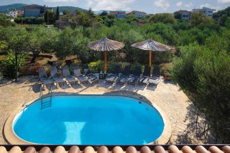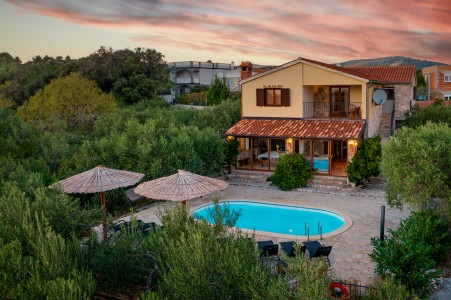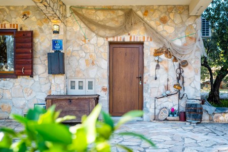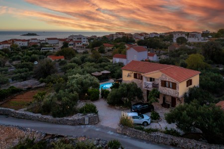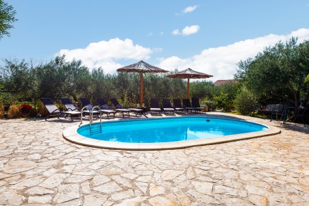 This comfortable villa for 16 people is located near Rogoznica, in the village of Zečevo Rogozničko, on a 2,500 m² enclosed property available exclusively for your private use. Perfectly suited for several families or a larger group of friends, the villa consists of four separate units with a total of eight bedrooms, rented exclusively as a single property. Look forward to your private swimming pool (7 x 3,5 m) with sun terrace, outdoor shower, and comfortable sun loungers. A particular highlight is the separate wellness area in the garden, equipped with a jacuzzi as well as a bathroom with shower. In nearby Rogoznica, just 2 km away, you will find numerous restaurants, bars, supermarkets, and beautiful promenades for leisurely strolls. Rogoznica is especially renowned for the modern Marina Frapa and the fascinating Dragon’s Eye Lake (“Zmajevo oko”), a saltwater lake approximately 60 meters deep, whose oval shape resembles an eye and is considered one of the region’s most remarkable natural phenomena.