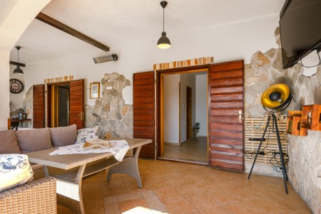 Further details: WiFi Internet is available free of charge. Parking is provided for up to 10 cars on the premises. In autumn, guests are welcome to experience the olive harvest, if desired. Your hosts also offer homemade products such as olive oil. For entertainment, there is foosball inside the house, and outdoors you will find a table tennis and a badminton net. Youth groups are welcome in this house.