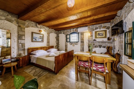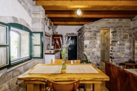The cozy stone cottage, restored and furnished in Dalmatian style, is located in Gustirna, a small and quiet village about 15 km north of the old town of Trogir, which is a UNESCO World Heritage Site. While Trogir offers numerous sights and places to go out, you will find various spots for swimming and sunbathing, restaurants and a yacht harbor in the coastal village of Marina, only 4 km away.
