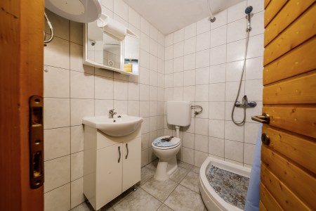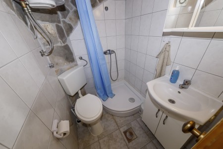 House for 6 persons: approx. 80 m² on two floors. On the ground floor, there are two living/sleeping rooms, each with its own entrance from the outside. Both dispose of a double bed, a small dining area with cooking facilities and their own bathroom with shower. While one living/sleeping room has air conditioning, the other is equipped with a mobile air conditioning unit. The upper floor offers a further living/sleeping room with double bed, cooking facilities and air conditioning, a bathroom with shower as well as a sun terrace with deckchairs. From the terrace, you can enjoy a marvelous view of the hilly Dalmatian landscape with its endless olive groves and vineyards.