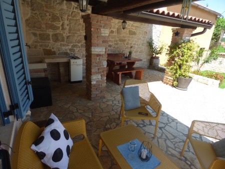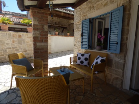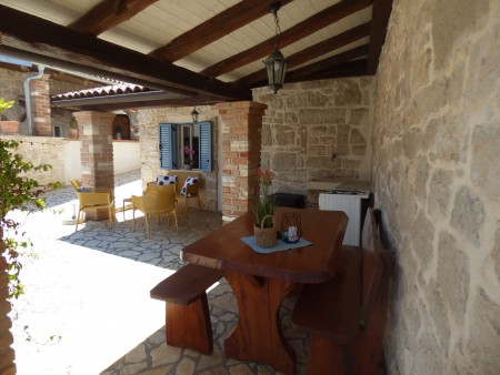 This charming little cottage is located in the center of Funtana and offers accommodation for up to three guests. On the fully enclosed property you will find two sun loungers, a parasol, a barbecue and a covered terrace with a summer kitchen (sink, gas stove) and a rustic bench with table – perfect for enjoying outdoor meals. Funtana is located in the west of Istria between Poreč (7 km) and Vrsar (4 km) on the most rugged coastline of the peninsula with countless secluded bays and offshore islets. The small village offers shopping facilities, various restaurants, bars and cafes. There are numerous possibilities for excursions, such as the Aquapark Aquacolors (approx. 3,5 km) and the Dinopark (approx. 1 km), which is popular with families.