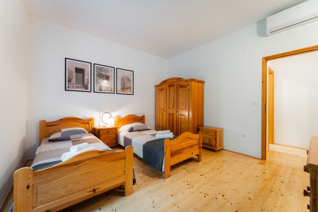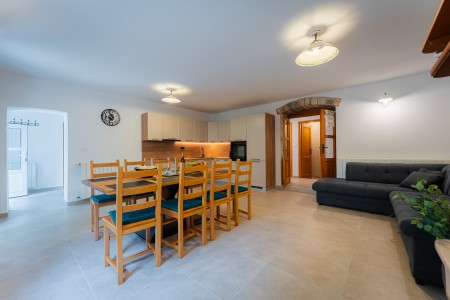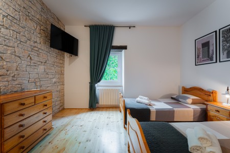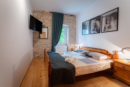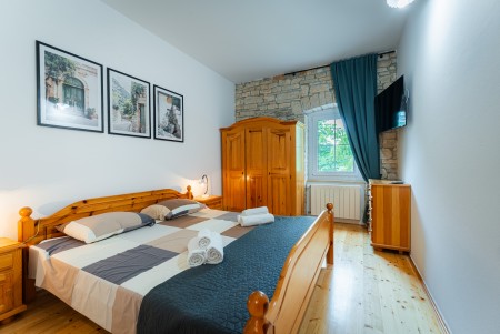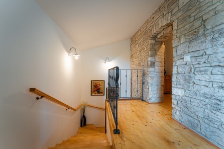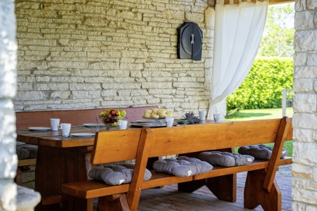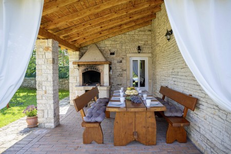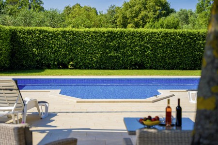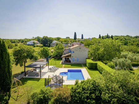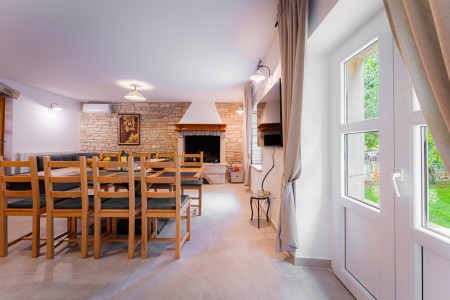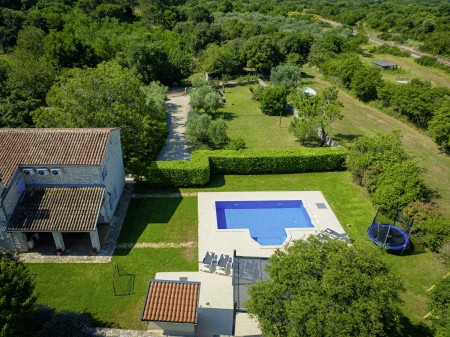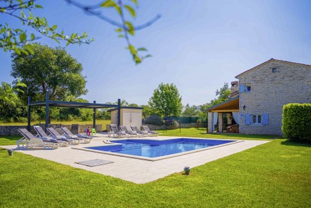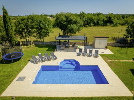 The traditional Istrian stone house is located on a beautiful property of 2000 m², in a small village, named Sv. Kirin. Located in the southern part of Istria, having only 20 inhabitants, Sv. Kirin is the right place for a peaceful and relaxing vacation with the whole family. The today’s owner, a young heir of the family, knew exactly how to keep the old charm and spirit, when he started to renovate the house. Even though it was completely reconstructed and adapted to needs of modern life, the owner succeeded to preserve many traditional details, which create an unique atmosphere. Heading inside, you will find spacious interiors equipped with everything needed for a pleasant stay. And when it comes to swimming and sunbathing, you will certainly enjoy the benefits of having your own private swimming pool right in front of the door.