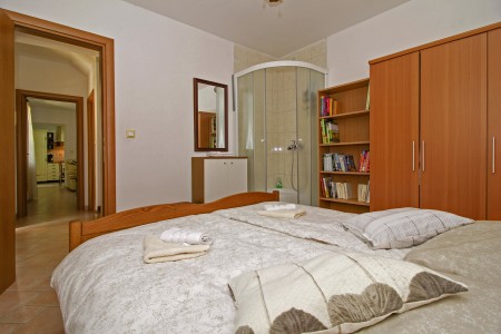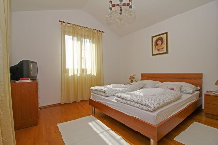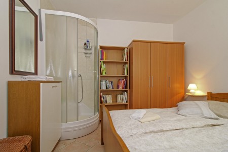 House for 4 persons: approx. 82 m² on two floors. On the ground floor, there is a comfortable eat-in kitchen, a living room with air conditioning, a bedroom with double bed and shower, separate WC. The first floor has air conditioning in the corridor, a bedroom with double bed, and a bathroom with shower.