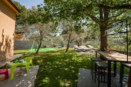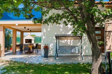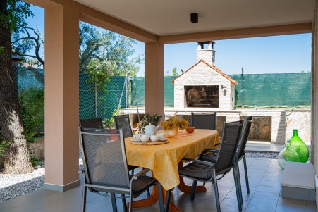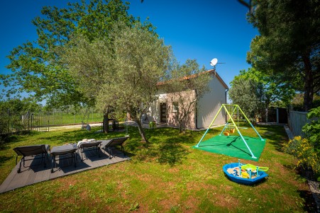 The holiday house is located in Peroj, a picturesque village on the west coast of Istria, about 10 minutes by car from Pula. Located only 60 metres from the beach, the house offers all the amenities for a relaxing beach holiday. In addition to a fully fenced garden with a barbecue, sink, seating, sun loungers, a parasol, and an outdoor shower, as well as a swing and a sandbox, you'll find a cozy interior with space for up to five people. In the small center of Peroj (approx. 1,5 km) you can find a restaurant and shopping facilities, while the next larger village Fažana (approx. 4,7 km) offers a wider range of gastronomic facilities as well as a lovely old town center. We highly recommend a boat excursion from Fažana to the Brijuni Islands, which are certainly worth a visit. From Peroj to Fažana you can go by car or you can take a walk along the scenic seaside promenade, lined with beautiful beaches and fragrant pine trees.