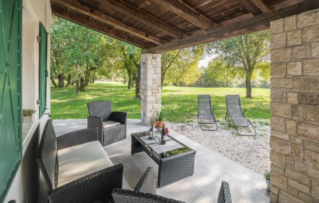 This detached house is nestled in Brajkovići, a small village near the renowned town of Rovinj. The house is surrounded by an open courtyard where guests can relax and enjoy in the shade. Two sun loungers are available in the garden, while the barbecue and a seating area are located on the covered terrace. The well known town of Rovinj offers numerous opportunities for swimming, sunbathing and water sports, and is only a 15-minute drive away. The old town with its winding streets, ice cream parlors and the church of Saint Euphemia, located on a hill, will delight you. The nearest restaurant is approximately 3 km away, and a grocery store can be found about 6 km from the property. Everything else for daily needs can be found in Rovinj, about 10 km away.