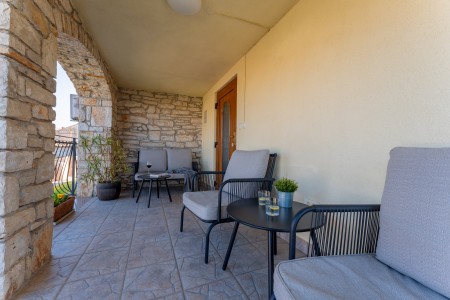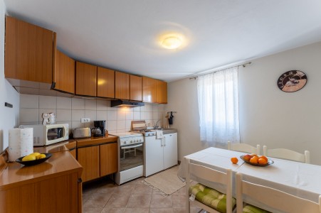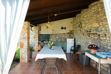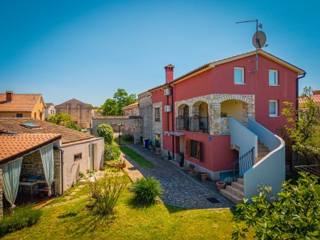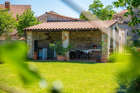 The holiday house is located in Peroj, a picturesque village on the west coast of Istria, about 10 minutes by car from Pula. Located only 800 metres from the beach, the house offers all the amenities for a relaxing beach holiday, featuring a fully enclosed garden with a summer kitchen (sink, gas stove and refrigerator), barbecue, outdoor seating area and sun loungers. The interior comprises two units that are rented exclusively as a single unit. Heading inside, you will find a cozy furnished interior. In the small center of Peroj (400 m) you can find a restaurant and shopping facilities, while the next larger village Fažana (3,8 km) offers a wider range of gastronomic facilities as well as a lovely old town center. We highly recommend a boat excursion from Fažana to the Brijuni Islands, which are certainly worth a visit. From Peroj to Fažana you can go by car or you can take a walk along the scenic seaside promenade, lined with beautiful beaches and fragrant pine trees.