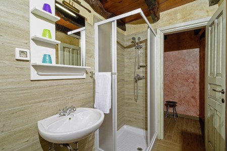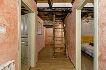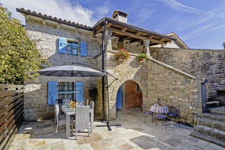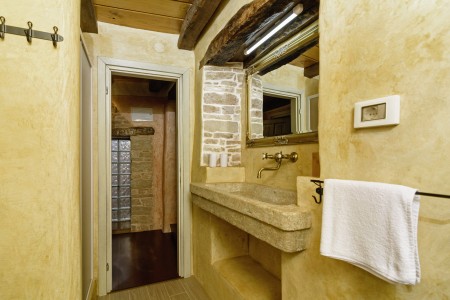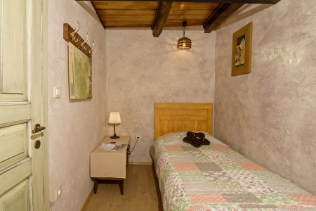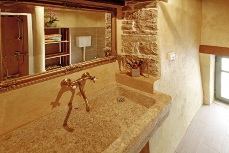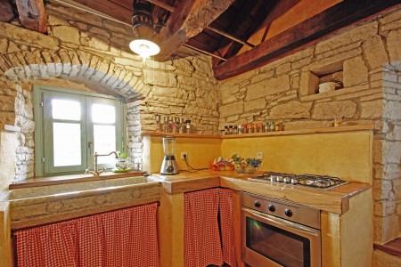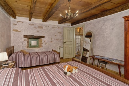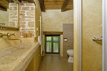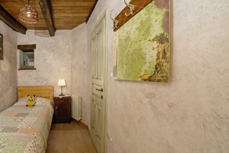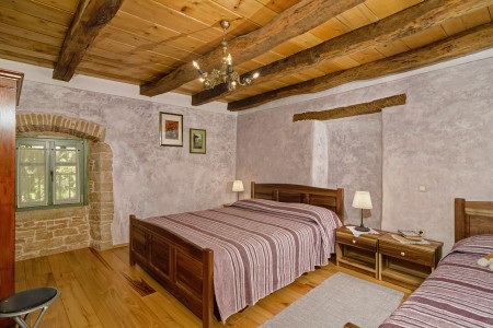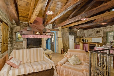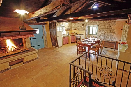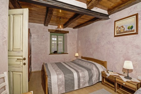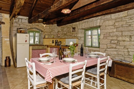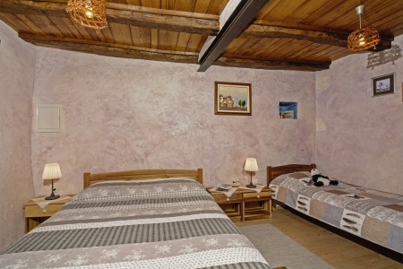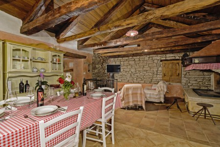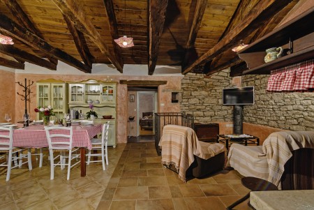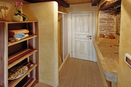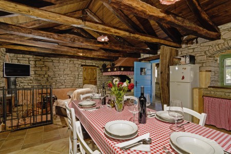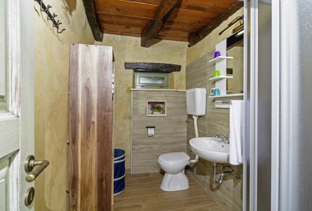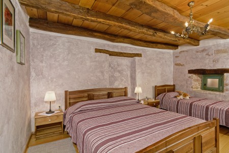 Trošti is a small village in Central Istria, just a few hundred meters away you'll find the official geographical center of Istria. It is the perfect origin for hiking and biking trips, and the beaches of Istria's western and eastern coast are just half an hour drive away. With an age of about 300 years, Erisa is the oldest house of the village. For more than a decade, its owner restored and renovated it, and adapted it to modern demands. He took care to use autochtonous and natural materials to conserve its original character. Although the plot is comparatively small, the estate consists of hectares of lawns, fields, and woods, where you can move freely. Your landlords, which are living in the neighbouring house, are dealing with agriculture for their personal demands. In addition, they have sheep and chickens.