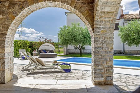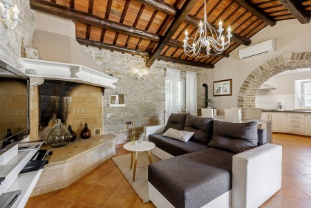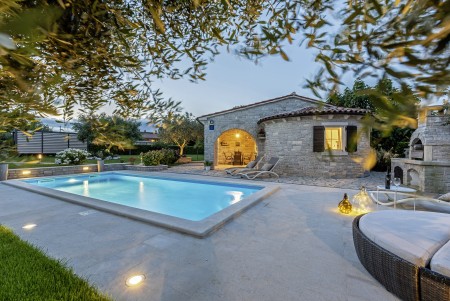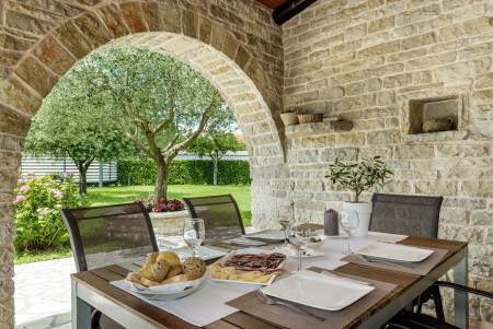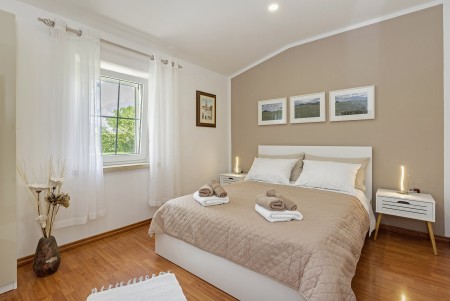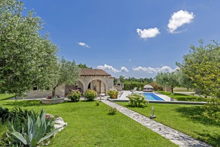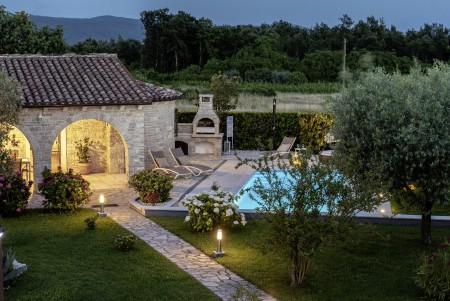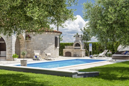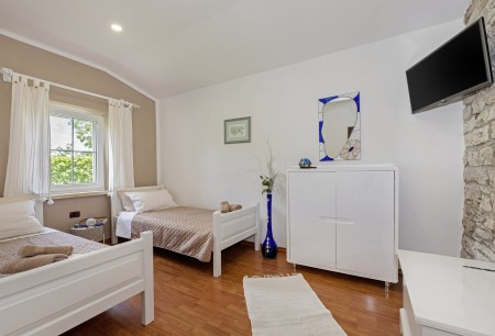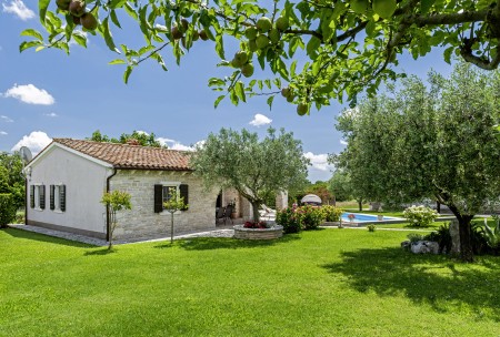The cozy ground-level holiday home, which its owners built from natural stone all by themselves, is situated near to Barban in the small village Frkeči, on the same grounds as the house of the hosts, in approx. 50 m distance. The small town of Barban is well known for the old Istrian horse race "Competition for the Ring", which takes place every year on the penultimate weekend in August and attracts numerous visitors. Your hosts invite you to discover the beautiful landscapes of this area and will be happy to show you them in person. You can buy fresh eggs, vegetables from the garden and homemade wine and schnapps. The private swimming pool (6 x 4 m) provides refreshment on warm summer days.
