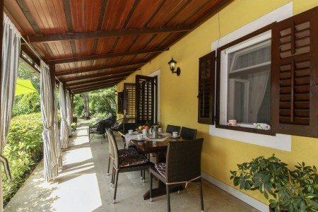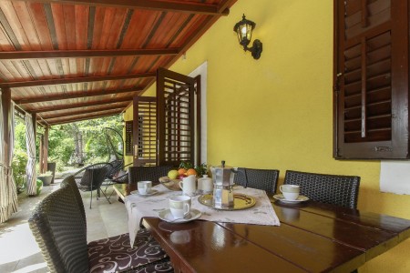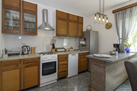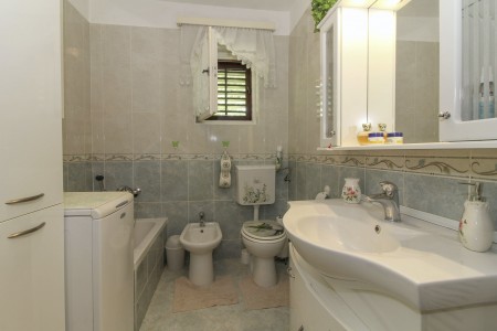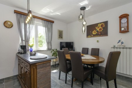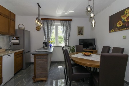 Near the small port of Plomin Luka, house Jolanda awaits you in a quiet location on the east coast of the Istrian peninsula. The beach "Copacabana" with beach bar and restaurant is only 1 km away from the house. Active vacationers will find here the best conditions for extended hikes and tours by bike through the uniquely beautiful landscape. Those who just want to relax and unwind are also in good hands here. The surrounding small towns Plomin (1 km) and Labin (11 km), and also Opatija (35 km) are certainly worth a visit. In the nearby town of Brestova you will find a ferry connection to the island of Cres – a paradise for nature lovers.