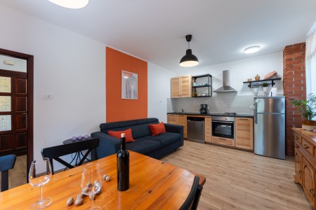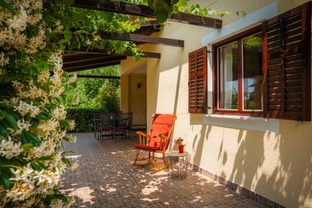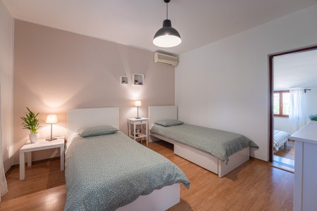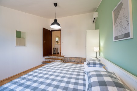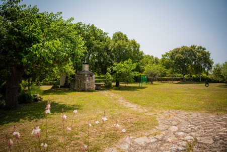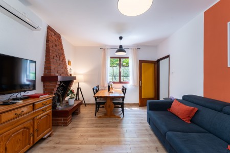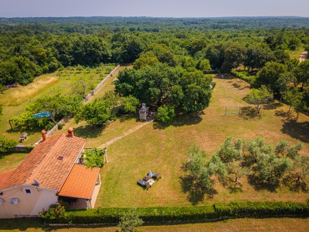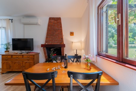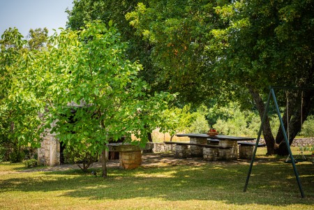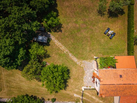 This charming two-bedroom house is located in the peaceful and quiet village of Bratulići, only a short drive away from some fantastic beaches on the east coast of Istria. The house is surrounded by a large yard (3500 m²) with well-kept lawns, old trees, and a lovely barbecue area with benches and table – the perfect place to relax and unwind in a private atmosphere after an exciting day at the beach. Offering plenty of space for kids to play safely, the house is also equipped with a high chair and a baby bed.